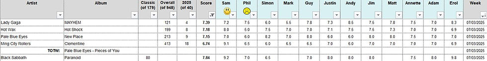 The Hannah AI has not checked but I don’t think we’ve ever had identical scores for all 4 new albums, as Adam did this week. It was a defo week of 7s.