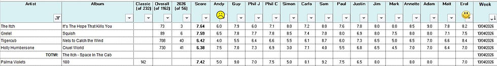Congrats to The Itch - our winners, they have the TOTW, sit at #3 this year and are awarded a very rare thing – a ‘9’ from Adam. Only the 2nd he’s dished out (can he remember the first, from Nov 2024 when he was still a fresher).